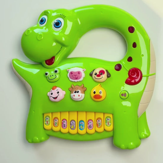 Забавлявай се и учи с динозавърчето Рони! 🦖 Това музикално пиано е създадено специално за деца над 3 години и съчетава в себе си музика, песни, звуци на животни и обучение по български език.